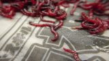 光を照らすと電気を起こす太陽電池。同じ原理で発電してみましょう。材料は銅の板とシャープペンシルの芯です。銅板をガスバーナーで強く熱します。通常のガスコンロなどでは難しいでしょう。1000℃以上に加熱し、水で急激に冷やします。そうすると、黒くなった部分や赤っぽくなった部分が出てきます。この赤っぽくなった部分を用います。