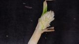 シールをはがしてみると、透かして黒く見えた部分は(恐らく)アルミニウムのような金属。おそらくアンテナになっていて、電磁誘導により電位を生じさせるのでしょう。そして中央部の砂粒のようなものは黒い固まり。(恐らく)これは半導体で、ここに管理番号程度の情報が記録されていて、それにより物品管理が行われているのだと考えられます。